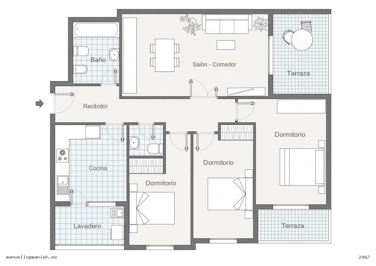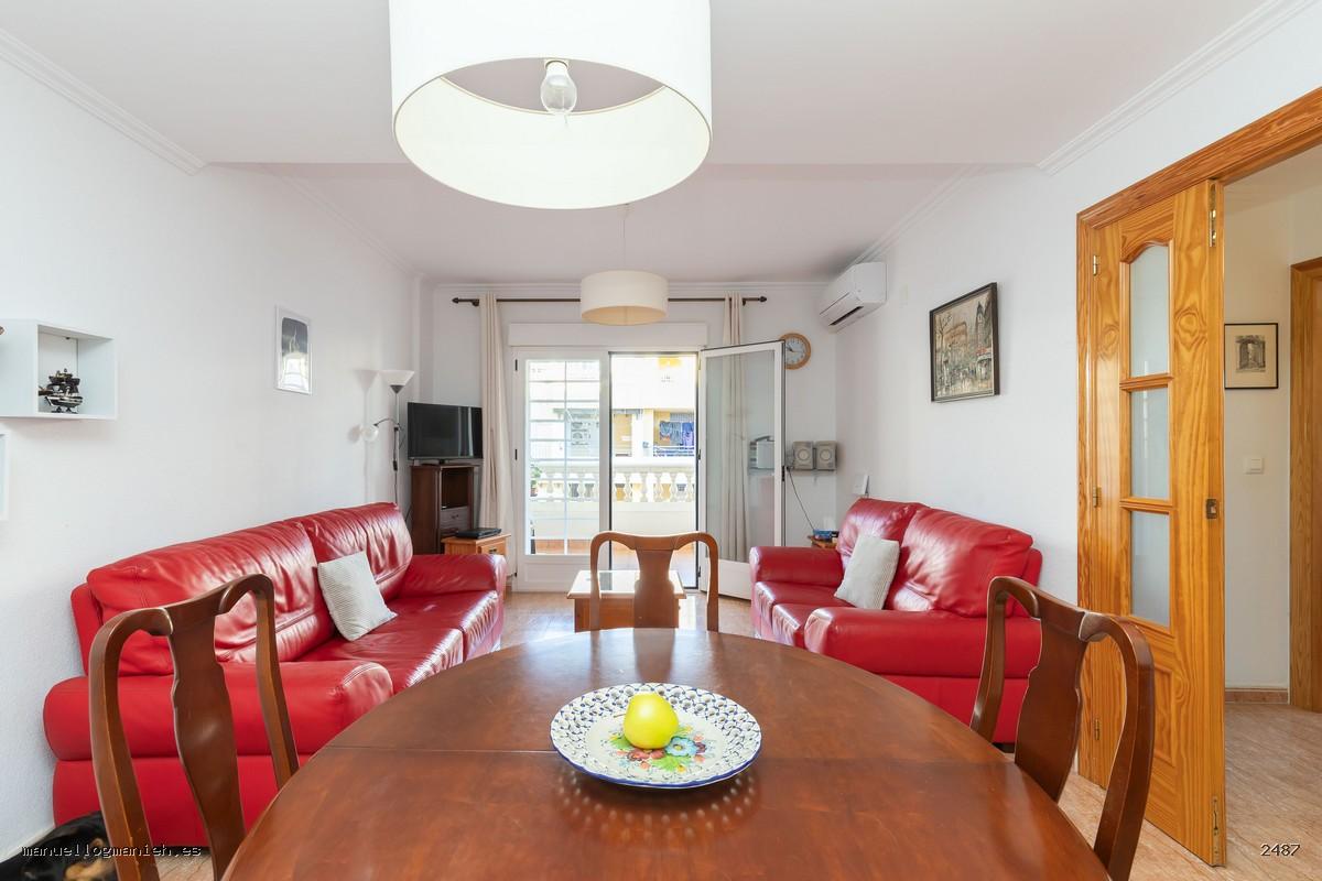 Zu verkaufen: Geräumige Wohnung im zweiten Stock mit Aufzug. Die Wohnung hat eine bebaute Gesamtfläche von 123 m², verteilt auf: Eingangshalle, Wohn-/Esszimmer mit direktem Zugang zu einer Terrasse, komplett eingerichtete und ausgestattete Einbauküche, Waschküche, drei geräumige Schlafzimmer (eines davon mit Zugang zu einer Terrasse), ein komplettes Badezimmer und eine Toilette. Die Immobilie wird komplett möbliert verkauft und verfügt über einen Garagenplatz.