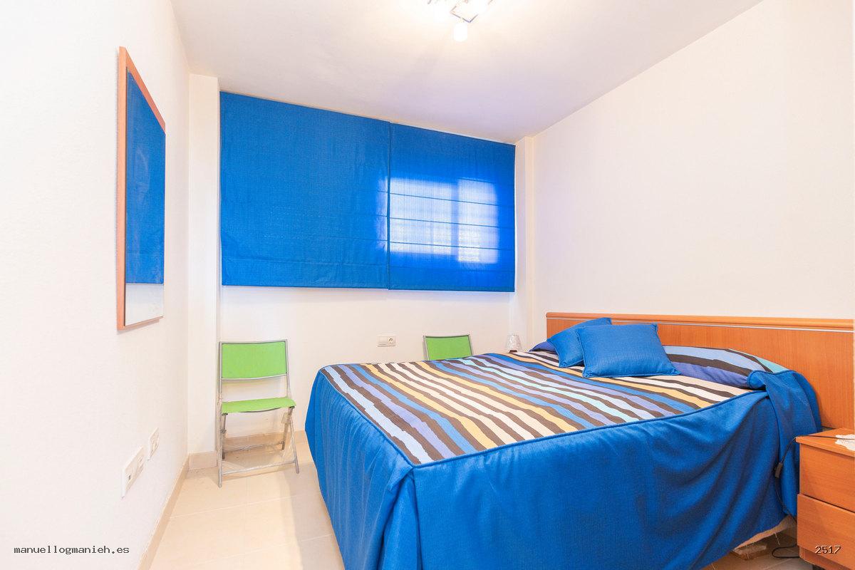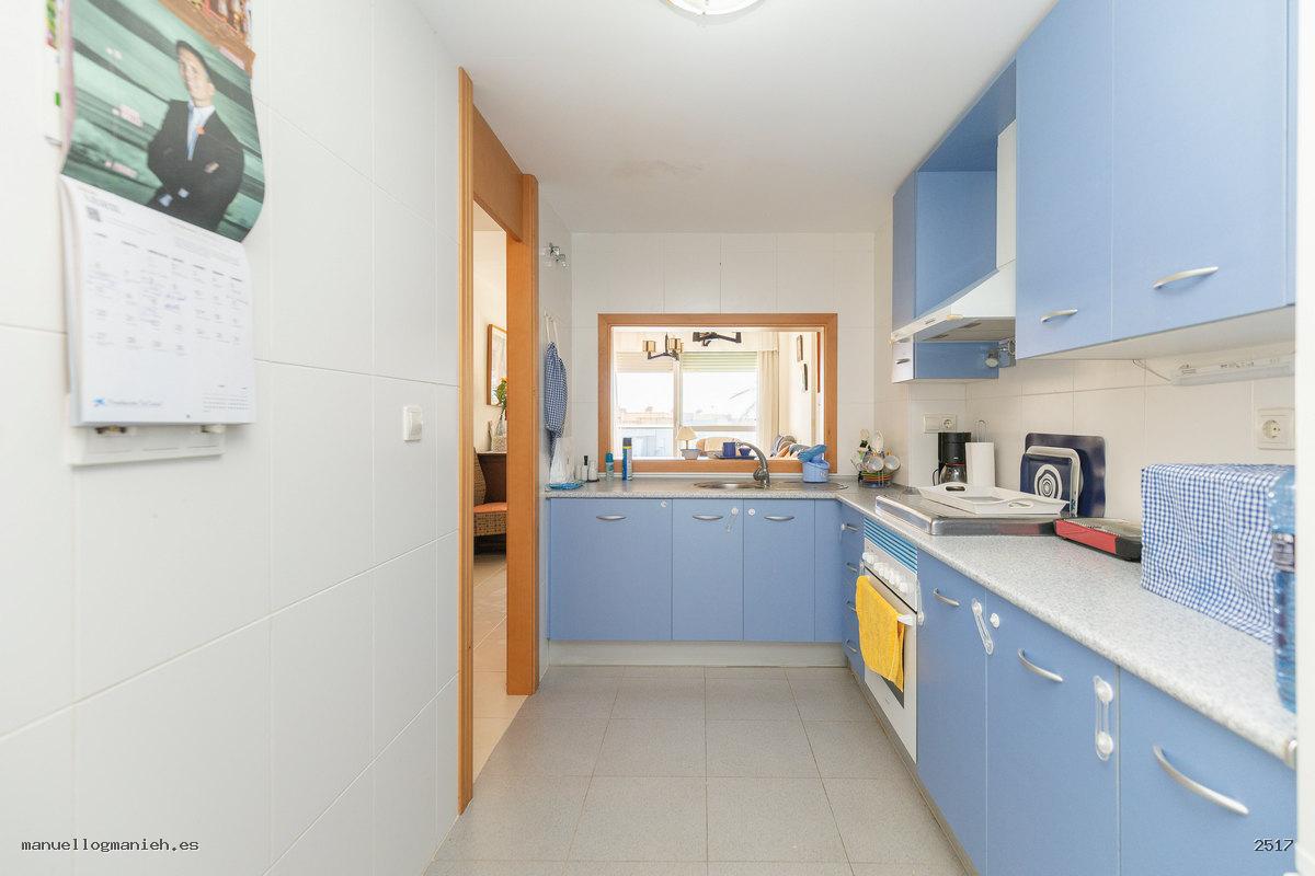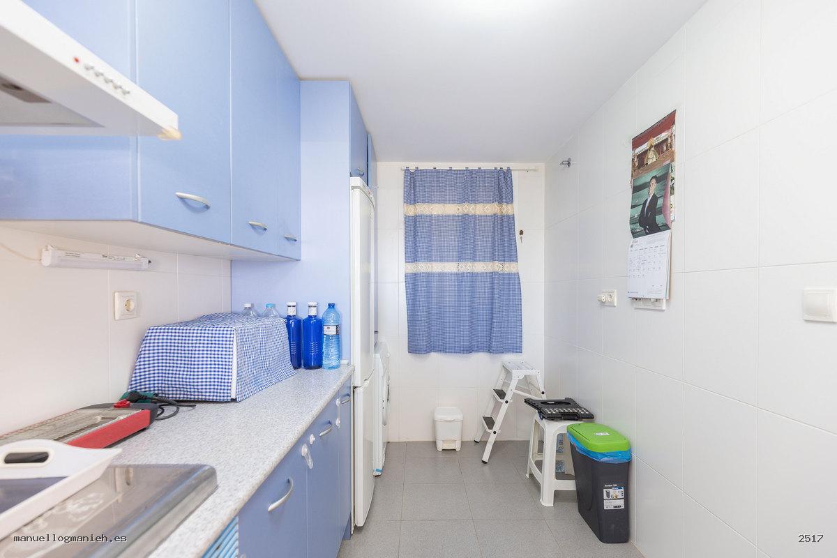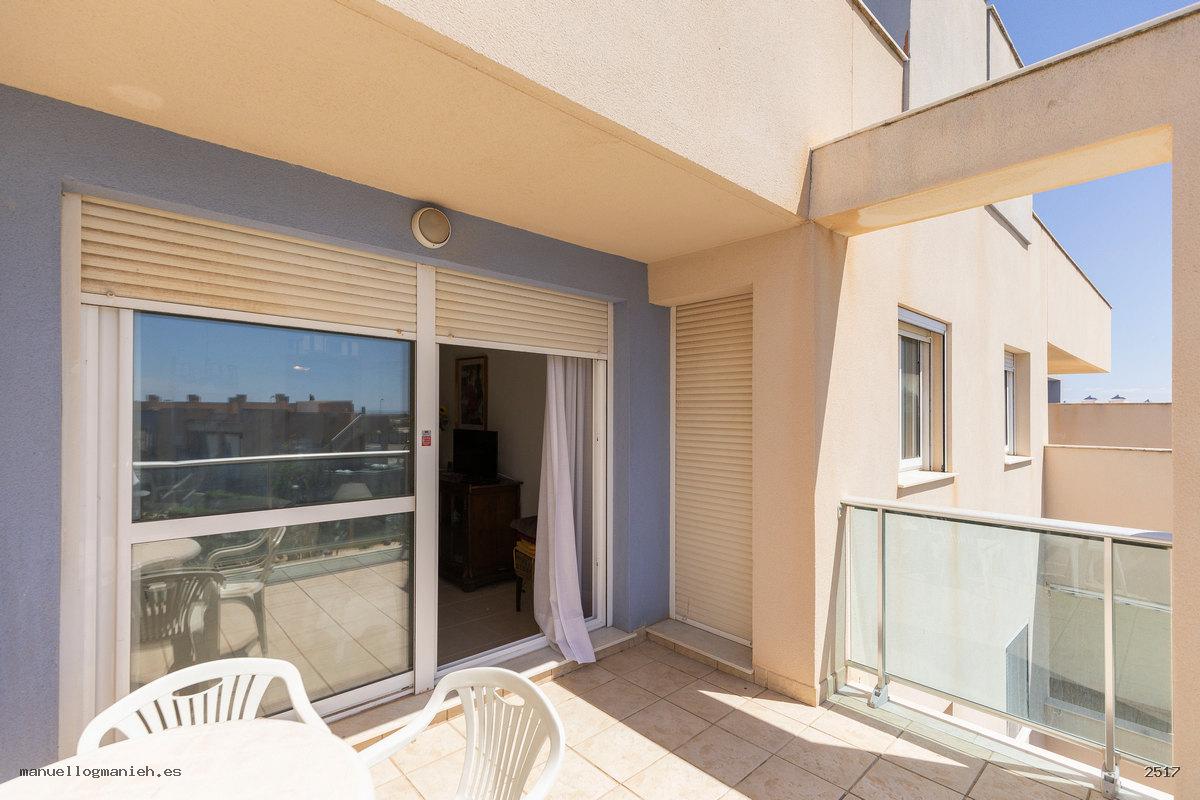 Sofort bezugsfertig! Zum Verkauf steht eine gemütliche Eigentumswohnung im zweiten Stock mit Aufzug. Die Wohnung verfügt über eine bebaute Fläche von 104 m² und eine großzügige Terrasse mit teilweiseem Blick auf den Strand und den Golfplatz. Die Aufteilung umfasst: Eingangsbereich, Flur, Wohn-Esszimmer mit direktem Zugang zur Terrasse, moderne, komplett eingerichtete und ausgestattete Einbauküche, zwei Schlafzimmer mit Einbauschränken und zwei Badezimmer. Das Hauptschlafzimmer verfügt über ein eigenes Bad. Hervorragende Bauqualität und erstklassige Ausstattung, Klimaanlage (kühlen und heizen), doppelt verglaste Fenster, Video-Gegensprechanlage und gepanzerte Eingangstür. Die Wohnung wird komplett möbliert verkauft und beinhaltet einen Parkplatz.