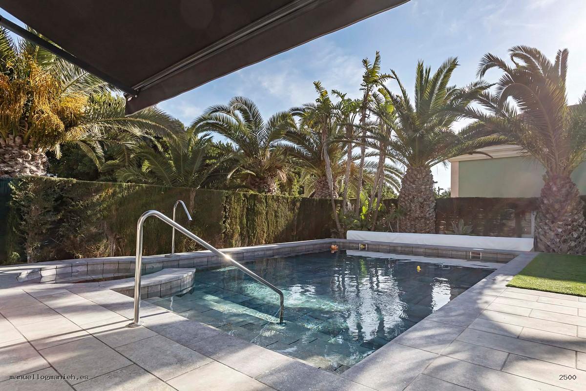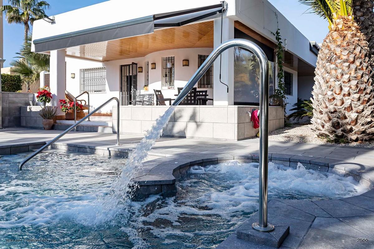 Geräumige, freistehendes Villa auf einem 903 m² großen Grundstück. Es hat eine Gesamtfläche von 396 m². Das Anwesen erstreckt sich über zwei Etagen. Das Erdgeschoss besteht aus: Eingangshalle, Wohn-/Esszimmer, Terrasse, voll ausgestatteter Einbauküche, 4 Schlafzimmern (eines davon mit Ankleidezimmer) und 2 Badezimmern (eines davon en suite). Im Untergeschoss befinden sich ein Abstellraum und eine große Garage, die Platz für 3 Autos bietet. Im Außenbereich befinden sich ein herrlicher Pool, ein Parkplatz, ein großer Garten und eine spektakuläre Terrasse.