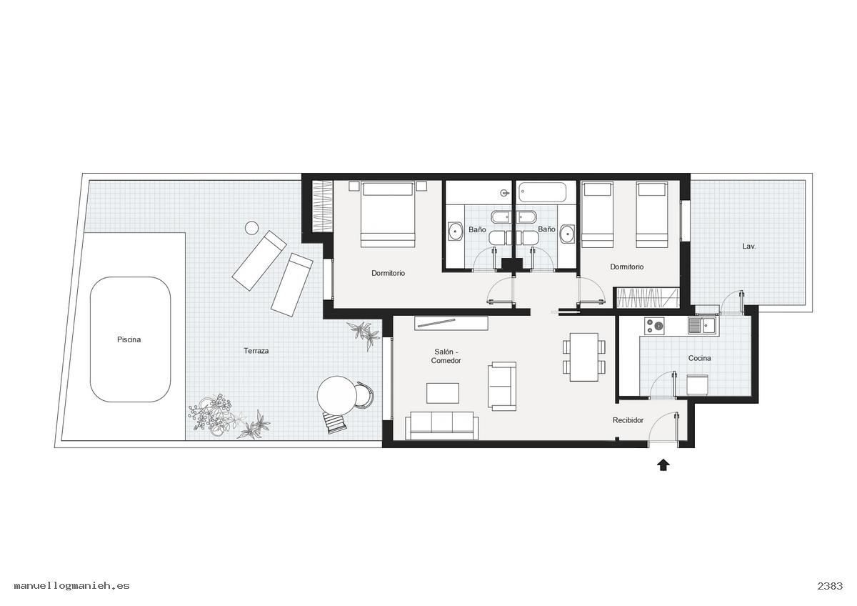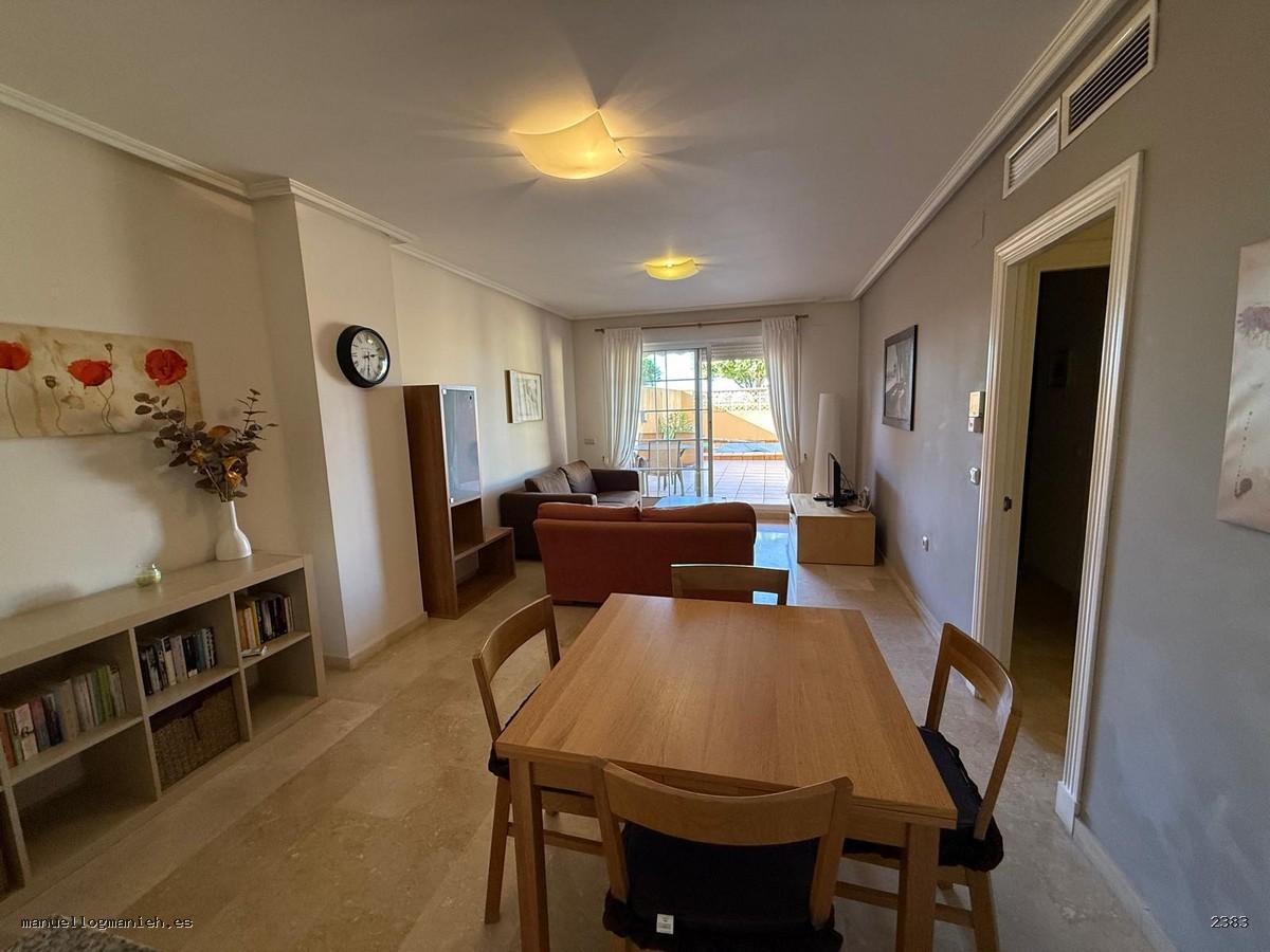 A la venta atractivo y amplio apartamento ubicado en planta baja. Tiene una superficie total construida de 140 m² y útil de 80 m² más una gran terraza con piscina. El apartamento consta de recibidor, salón-comedor, cocina, patio/lavadero, 2 dormitorios, 2 cuartos de baño completos (uno en suite). Con orientación suroeste, se podrá aprovechar al máximo el sol durante la tarde, disfrutando de momentos soleados junto a la piscina. Además, la propiedad cuenta con aire acondicionado frio y calor, ventanas con doble acristalamiento, video portero, puerta blindada. Se vende totalmente amueblada e incluye plaza de garaje (39 m²).