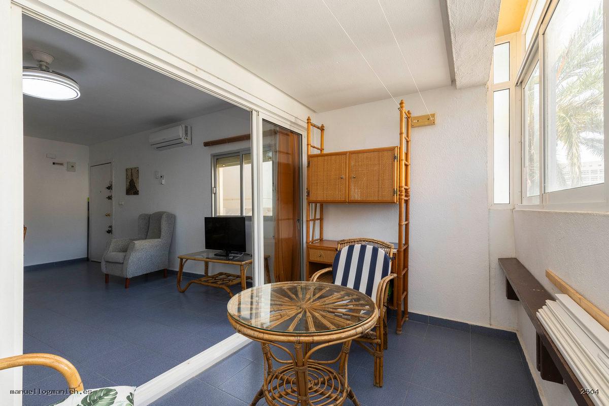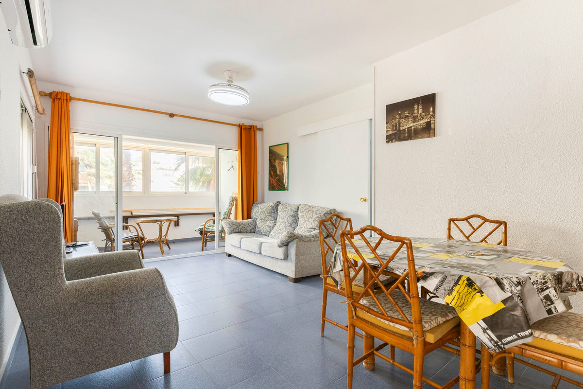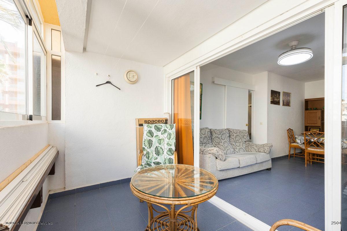 A la venta apartamento en planta primera. Cuenta con 98 m² construidos y 95 m² útiles distribuidos en: recibidor, salón-comedor con acceso a la terraza acristalada, cocina totalmente amueblada y equipada, dos dormitorios y un cuarto de baño. Se vende completamente amueblado y cuenta con aire acondicionado.
