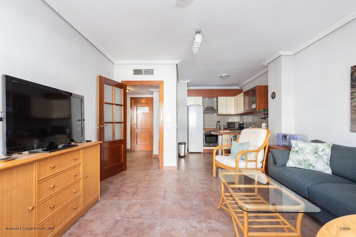 A la venta amplio y soleado apartamento situado en planta tercera con ascensor. Dispone de 85m² construidos distribuidos en: recibidor, salón-comedor, gran terraza, cocina totalmente amueblada y equipada, un dormitorio con armario empotrado y un cuarto de baño. Se vende completamente amueblado.