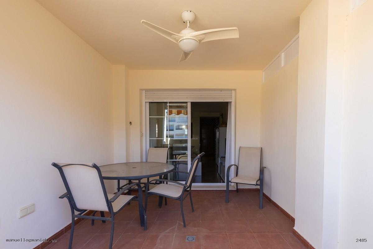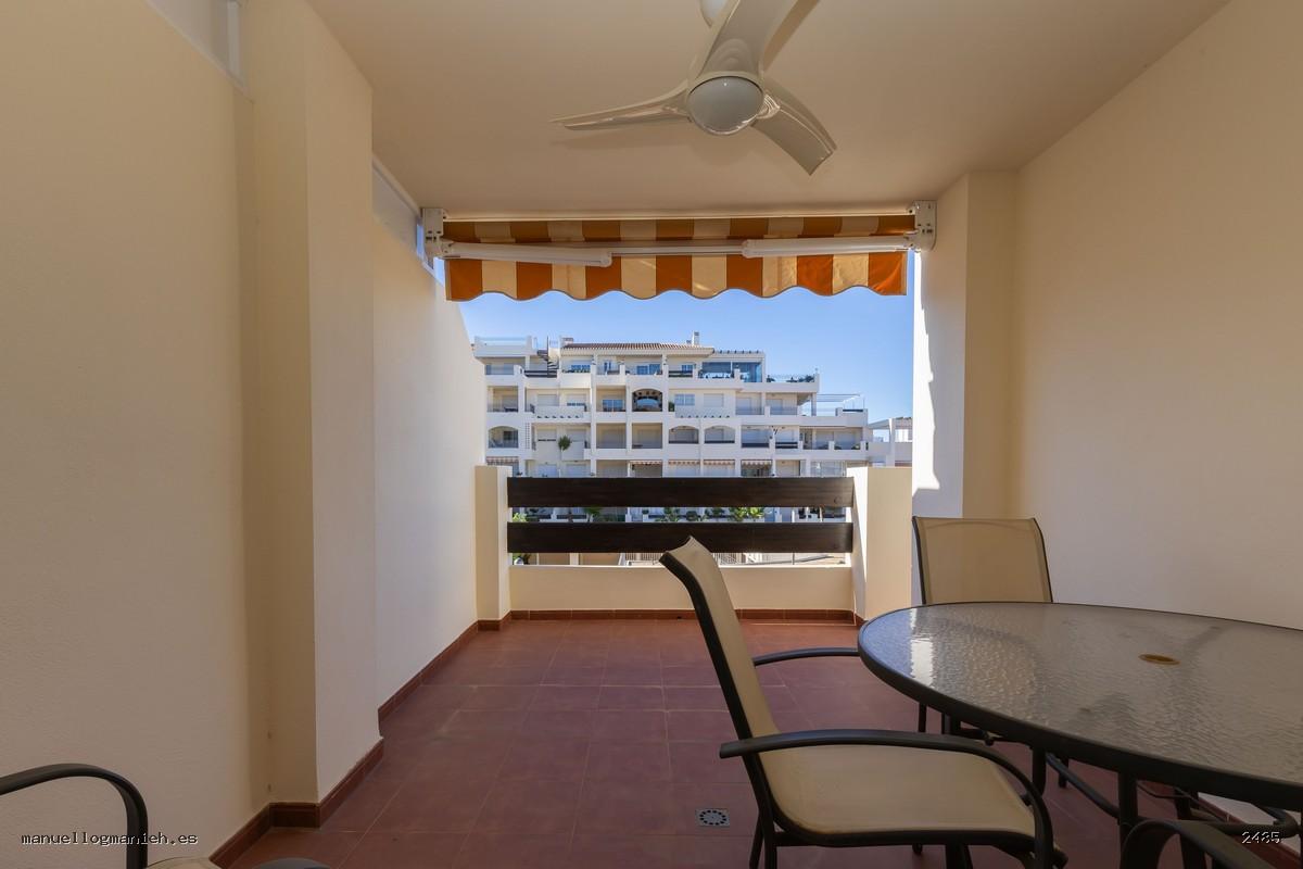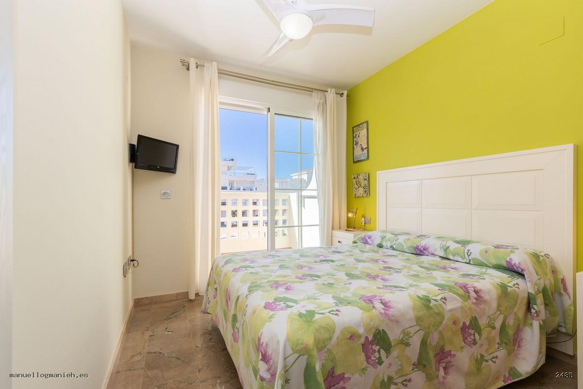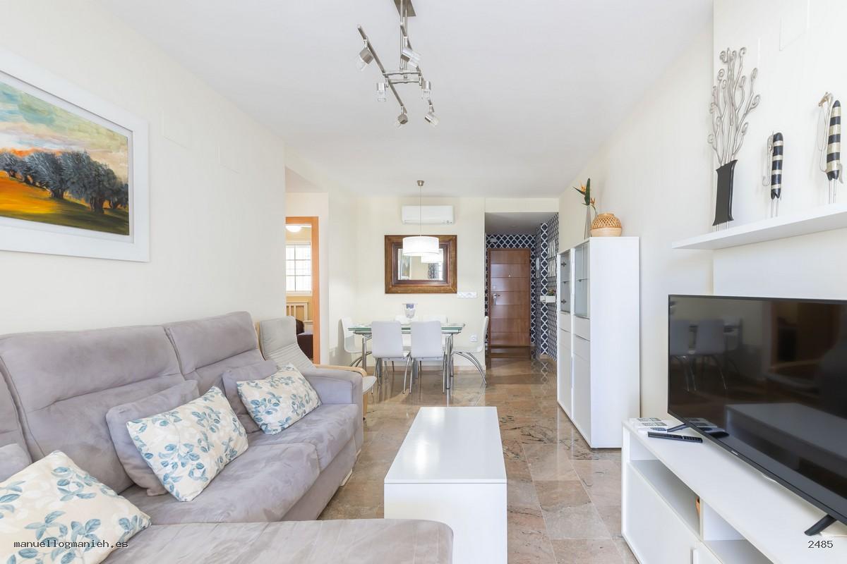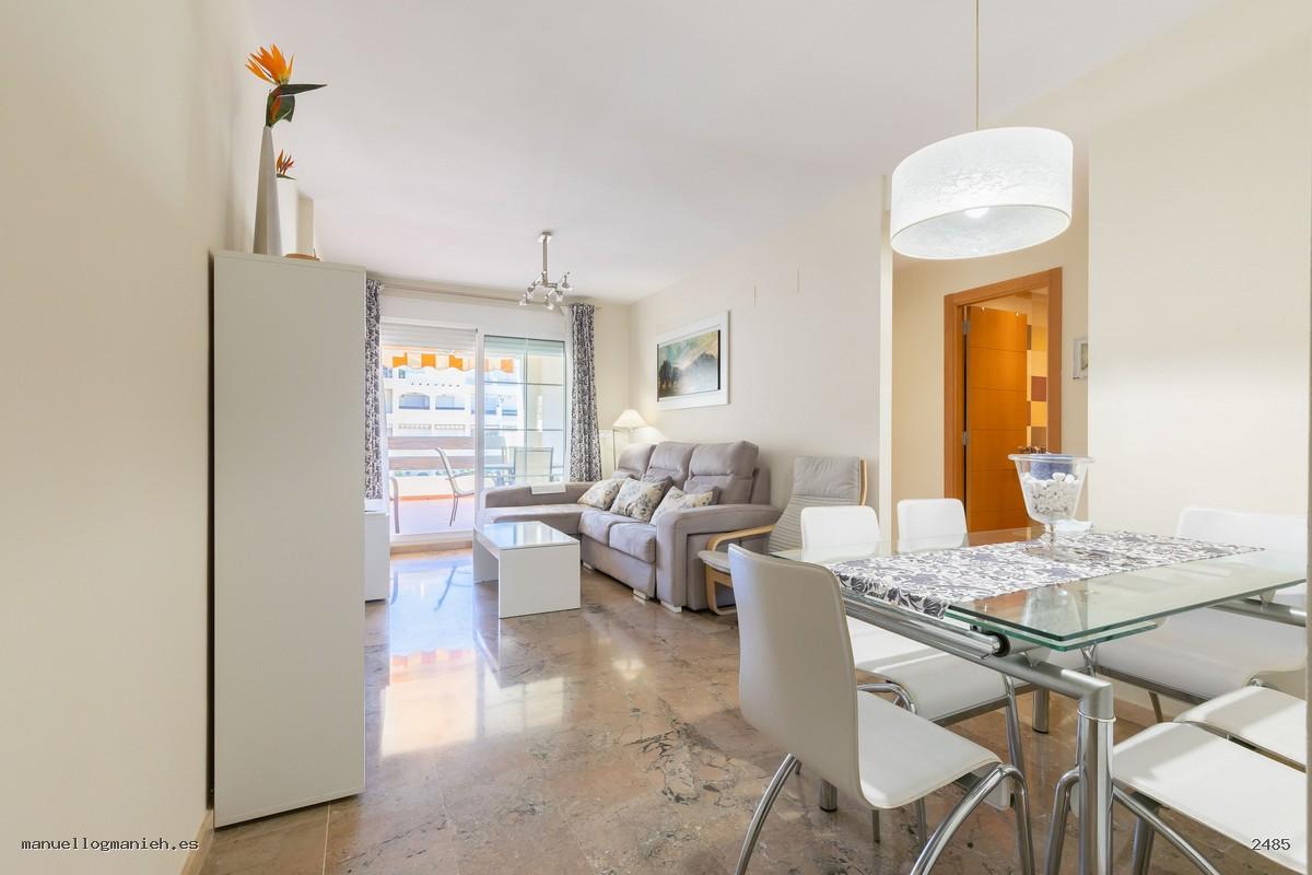 A la venta espectacular apartamento en planta primera que cuenta con 99 m² construidos distribuidos en: recibidor, amplio salón-comedor con acceso a una terraza de 24 m², cocina independiente totalmente equipada que cuenta con un lavadero, dos dormitorios con armarios empotrados y dos cuartos de baño (1 en suite). Cuenta con aire acondicionado frío/calor, toldo, videoportero y puerta blindada. Se vende completamente amueblado y con plaza de garaje.