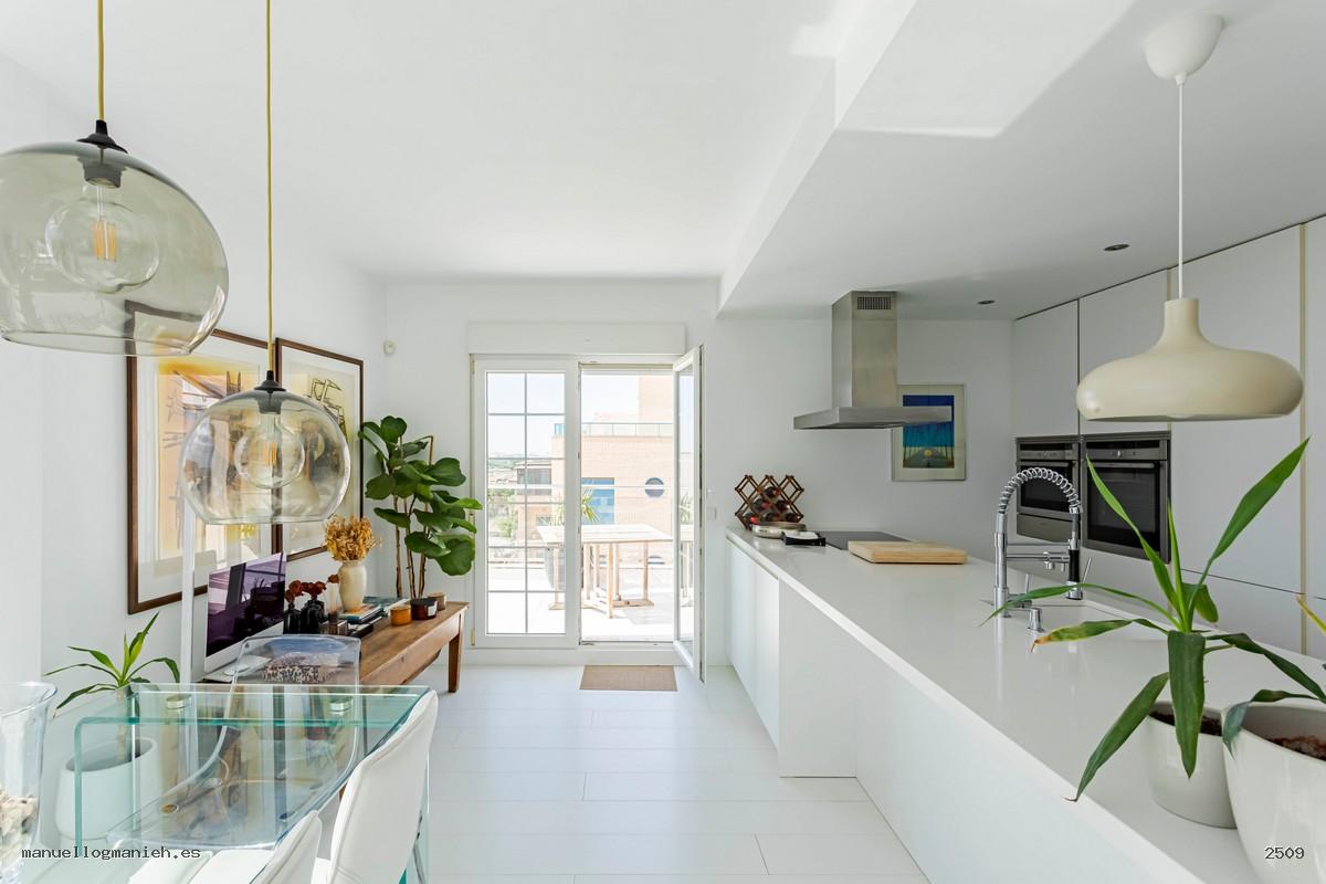 Este exclusivo ático de lujo se ubica en la quinta planta de un edificio de referencia en la zona, equipado con ascensor y piscina para uso de los residentes. La propiedad dispone de una superficie de 134,76 m² construidos y 100,40 m² útiles, a los que se añade una excepcional terraza de 104,38 m² que rodea perimetralmente toda la vivienda. Esta característica singular garantiza que todas las estancias sean exteriores, ofreciendo una luminosidad constante y vistas panorámicas e incomparables sobre el mar desde cualquier punto de la casa. La vivienda se vende totalmente amueblada y su distribución interior comienza con un recibidor que conduce a un salón-comedor integrado con una cocina de diseño tipo americana, la cual se encuentra equipada con electrodomésticos de gama superior. La zona de descanso se compone de tres dormitorios exteriores, dos cuartos de baño completos y un aseo adicional con plato de ducha y lavabo. En el apartado técnico, cuenta con climatización centralizada Daikin de 10.000 frigorías y alarma de última generación con cámaras integradas. El valor de la propiedad se completa con un trastero y dos plazas de garaje en el mismo edificio, asegurando la máxima comodidad en esta ubicación privilegiada de Aguadulce.