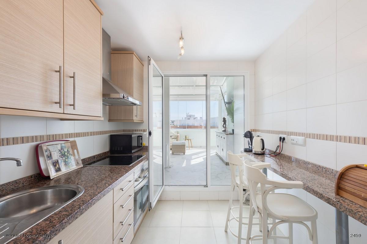 A la venta magnífica propiedad con mucha luz natural y con vistas excepcionales, situada en una cuarta planta con ascensor. Se trata de un ático único, con una superficie construida de 97 m² y 82 m² útiles, que destaca por su amplitud, distribución y calidad de construcción. Incluye el uso y disfrute exclusivo de una magnífica terraza de 64 m², parcialmente acristalada y habilitada como salón adicional, desde la que se pueden contemplar vistas impresionantes. El interior de la vivienda se distribuye en recibidor, amplio salón-comedor, cocina totalmente amueblada y equipada, lavadero, dos dormitorios con armarios empotrados y dos baños completos, uno de ellos en suite. Entre sus calidades destacan: suelos de mármol, ventanas con doble acristalamiento, videoportero, puerta blindada y sistema de aire acondicionado. Se vende amueblado e incluye plaza de garaje y trastero en planta sótano.