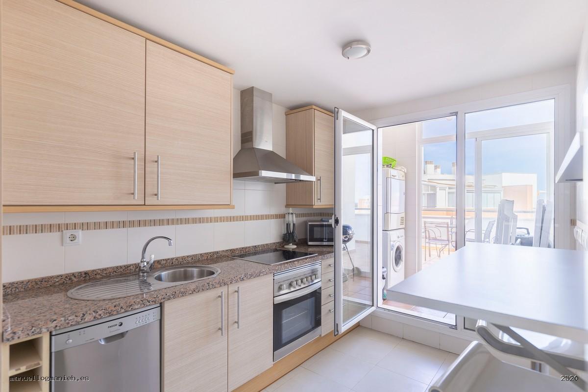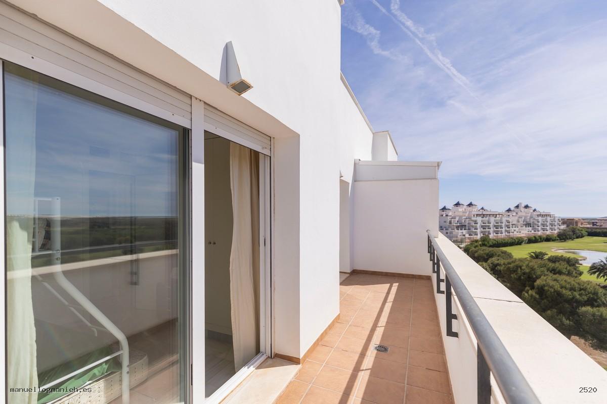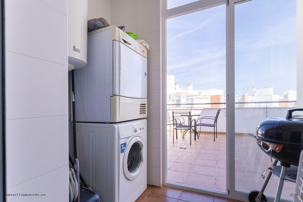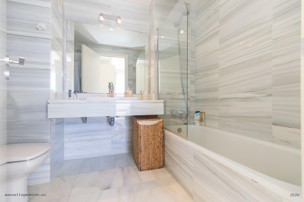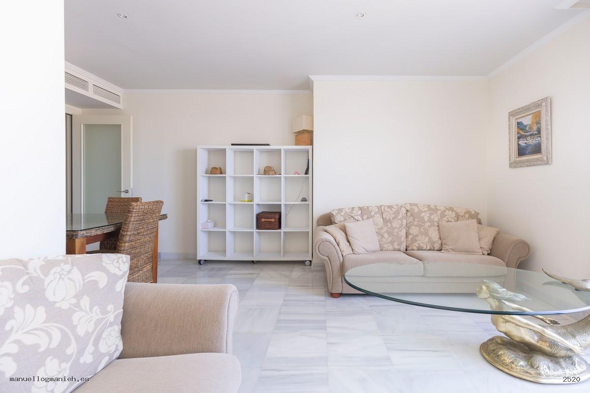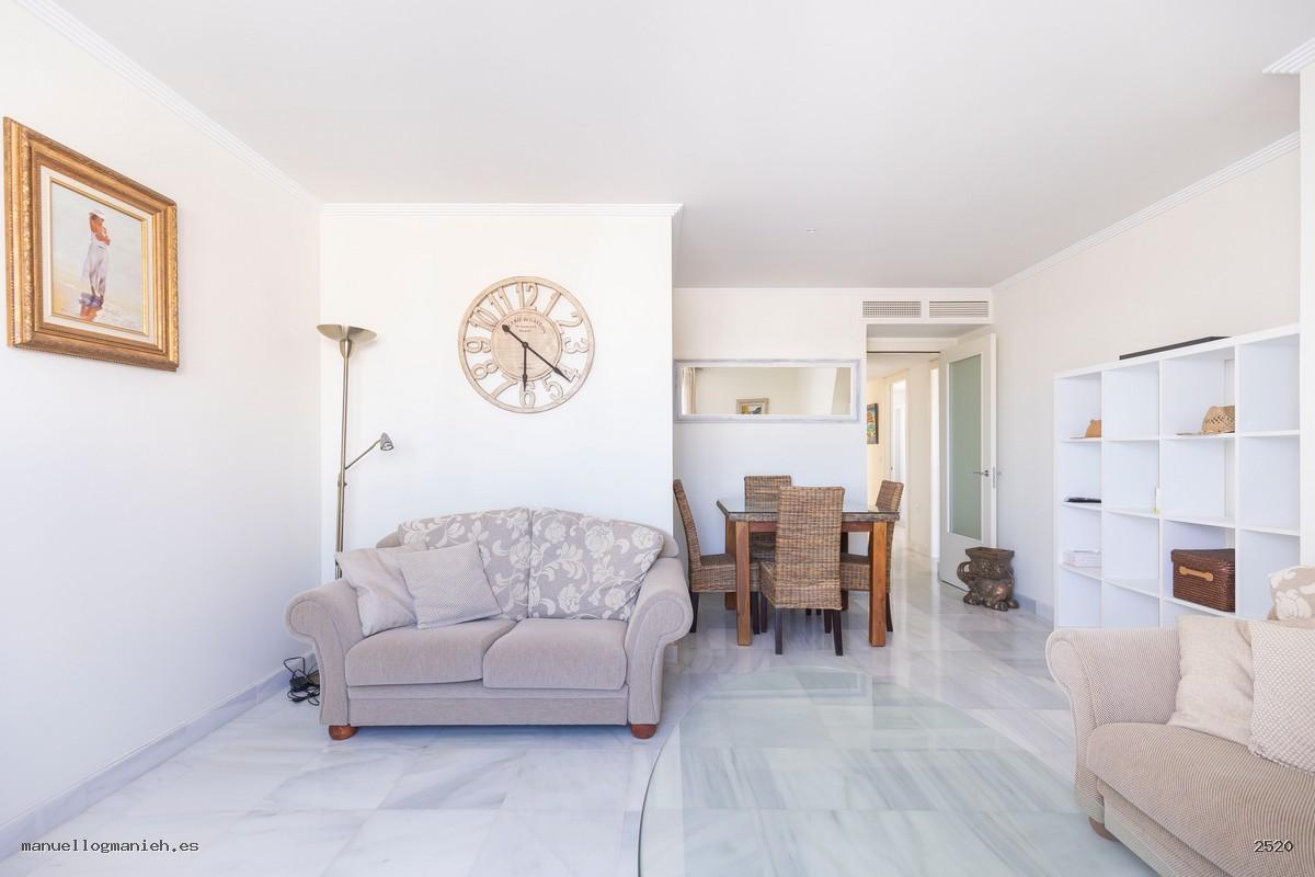 A la venta luminosa propiedad con vistas al campo de golf, situada en una cuarta planta con ascensor. Se trata de un ático con una superficie construida de 97 m² y 82 m² útiles, que destaca por su amplitud, distribución y calidad de construcción. Incluye el uso y disfrute exclusivo de una magnífica terraza de 64 m² con espectaculares vistas. El interior de la vivienda se distribuye en recibidor, amplio salón-comedor, cocina totalmente amueblada y equipada, lavadero, dos dormitorios con armarios empotrados y dos baños completos, uno de ellos en suite. Entre sus calidades destacan: suelos de mármol, ventanas de doble acristalamiento, videoportero, puerta blindada y sistema de aire acondicionado. Se vende amueblada e incluye plaza de garaje y trastero en la planta sótano.