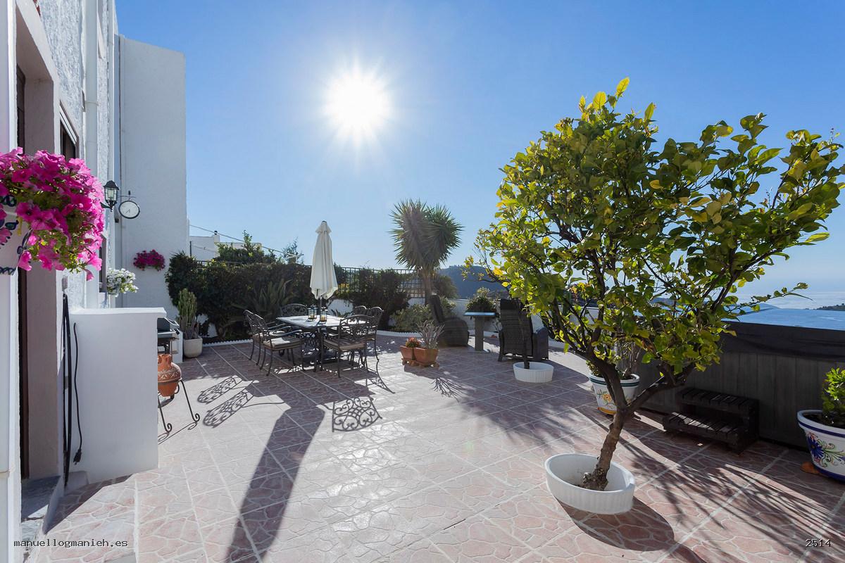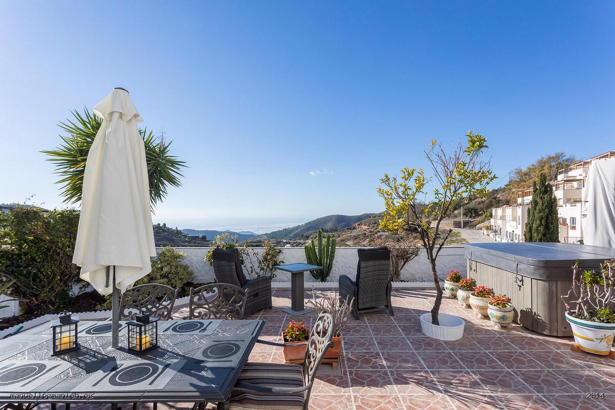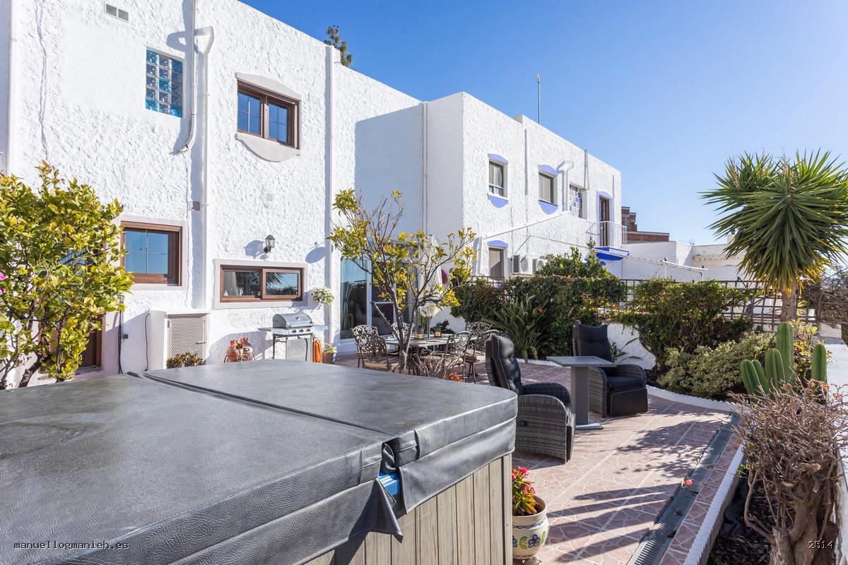 Chalet adosado ubicado en una zona privilegiada y que ofrece espectaculares vistas. La propiedad tiene una superficie de 122m² construidos y 94m² útiles distribuidos en dos plantas. Planta principal: vestíbulo, salón con chimenea, un dormitorio doble con cuarto de baño en suite y un aseo. Planta baja: despacho, salón-comedor con acceso a la gran terraza que ofrece vistas incomparables al mar, cocina totalmente amueblada y equipada, dos dormitorios y un cuarto de baño. La vivienda disfruta de aire acondicionado frio-calor y Whirlpool en la terraza.