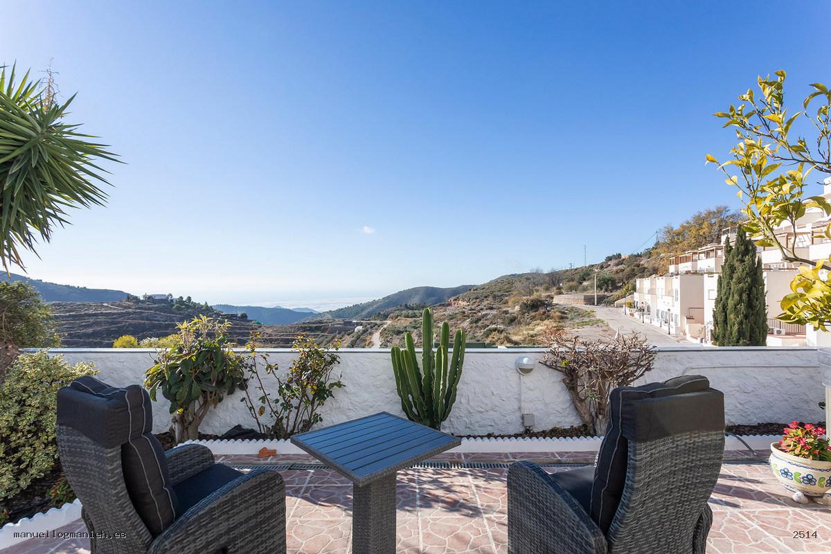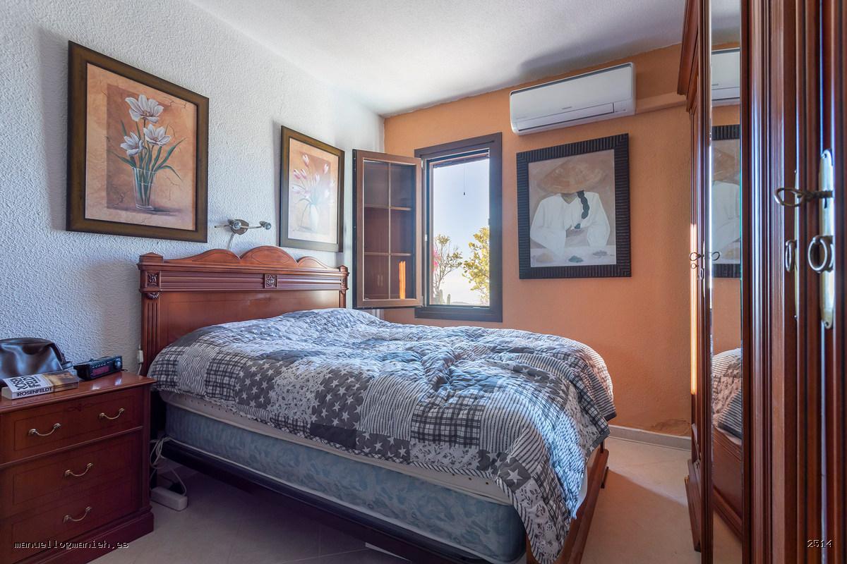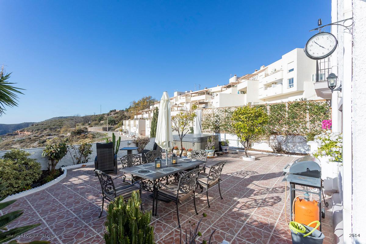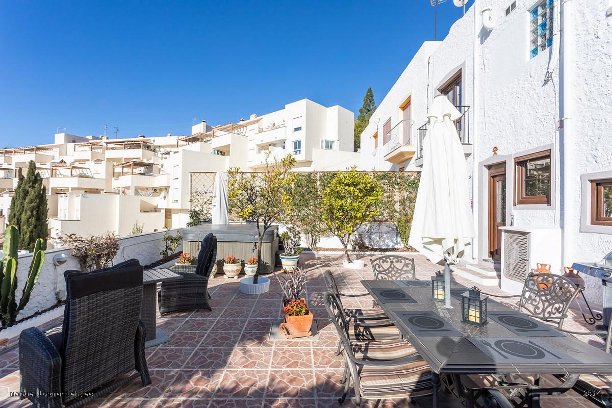 Chalet adosado ubicado en una zona privilegiada y que ofrece espectaculares vistas. La propiedad tiene una superficie de 122m² construidos y 94m² útiles distribuidos en dos plantas. Planta principal: vestíbulo, salón con chimenea, un dormitorio doble con cuarto de baño en suite y un aseo. Planta baja: despacho, salón-comedor con acceso a la gran terraza que ofrece vistas incomparables al mar, cocina totalmente amueblada y equipada, dos dormitorios y un cuarto de baño. La vivienda disfruta de aire acondicionado frio-calor y Whirlpool en la terraza.