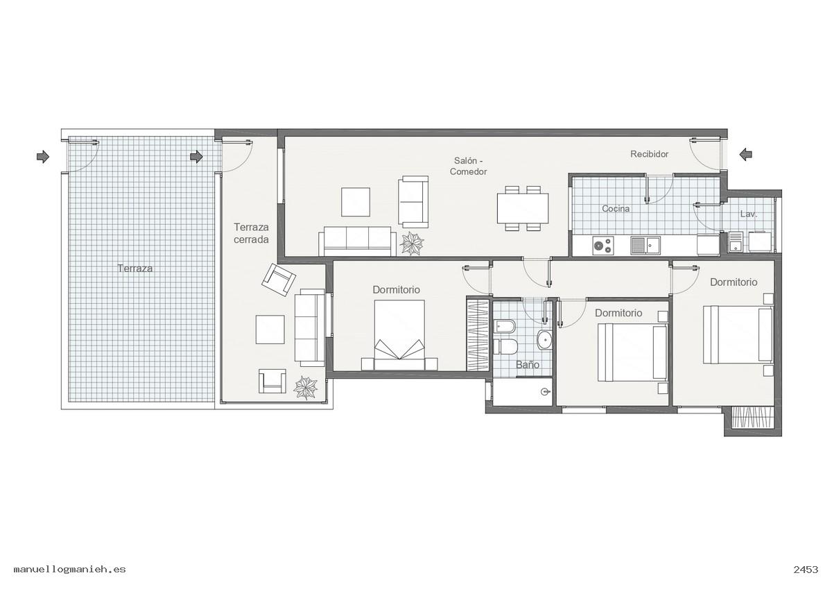 Spettacolare appartamento al piano terra in vendita con 107 m² di superficie costruita e 96 m² di superficie abitabile, ideale per chi cerca comfort e spazio in una posizione privilegiata. L'interno è distribuito come segue: ingresso, ampio soggiorno-sala da pranzo con accesso a un'imponente terrazza vetrata e un'altra grande terrazza scoperta con tende da sole, cucina indipendente completamente attrezzata con ripostiglio, tre camere da letto con armadi a muro e un bagno. Costruito con materiali di alta qualità, l'immobile si distingue per le sue eccellenti finiture. Dispone di aria condizionata sulla terrazza vetrata, ventilatori a soffitto in tutte le stanze e finestre con doppi vetri. Viene venduto completamente arredato, pronto per essere abitato, e comprende anche due posti auto.